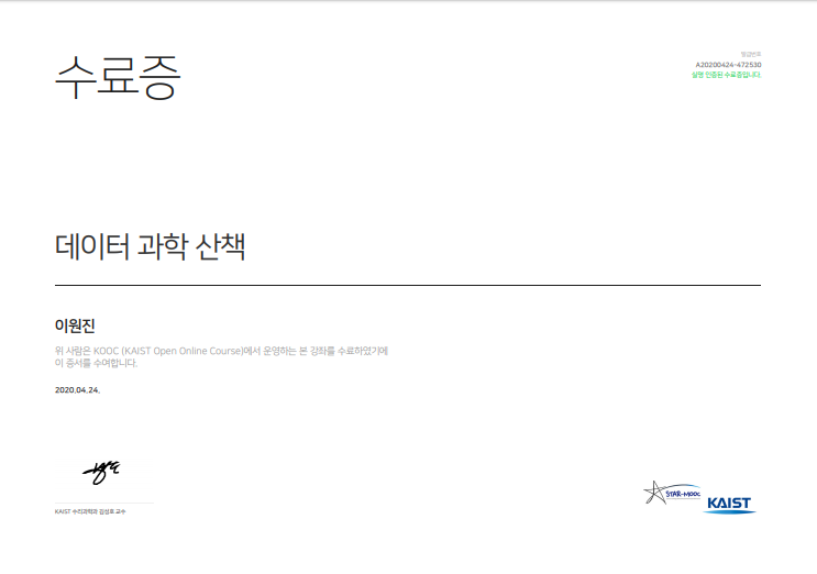 데이터과학과 R, 통계학에 대한 아무런 지식없이 듣기 좋은 수업이었다.