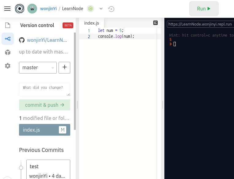 가장 큰 특징은 화면에서 보이듯이, Repl이라는 닉값을 아주 잘 하고 있다. 코드를 적고 상단의 'Run'버튼을 누르거나, Ctrl+F5 단축키로 바로 실행결과를 볼 수 있다. 파이썬 IDLE를 사용하듯이 바로바로 식을 입력할 수도 있다. 커맨드라인에서 동작하는 프로그램을 짜는데에 유용한 서비스이다.
