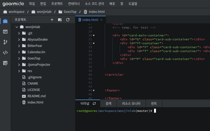 컨테이너 단위로 다양한 스택을 지원하는데, '아니 이런 것도 지원을 한다고?'싶은 생각도 든다. 사용해본 것 중에는 지원하는 기능이 가장 많고, 그러면서도 필요한 것만 딱 집어 제공해주는 느낌을 준다. 버전관리도 되고, 터미널도 있다.