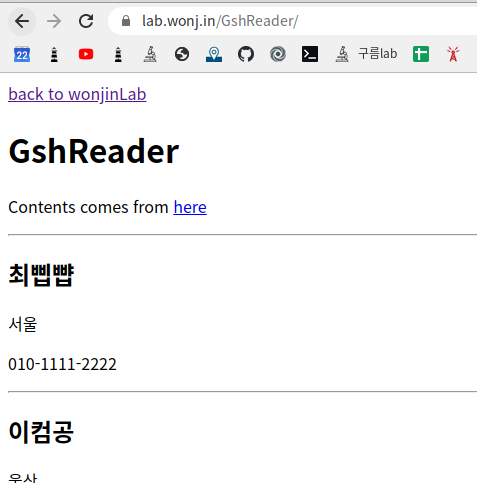 게시된 링크로 들어가보면 구글시트에 작성한 내용이 잘 나오는 것을 확인할 수 있다. 하지만 우린 저 링크를 사용하지 않는다.