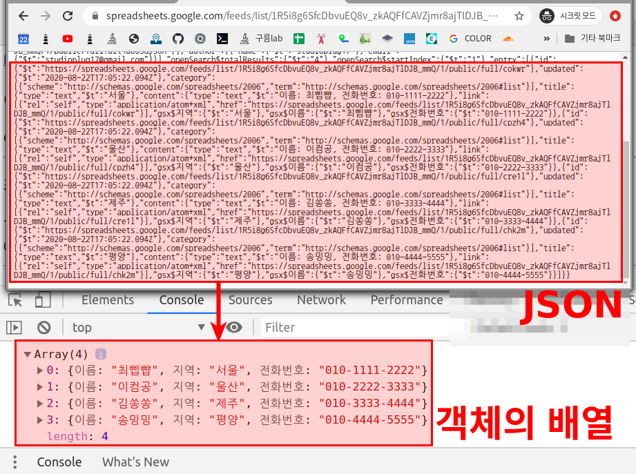 https://spreadsheets.google.com/feeds/list/여기에 KEY를 넣어주세요/1/public/full?alt=json