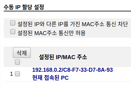내부 기기 IP 고정할당