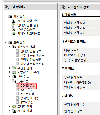 iptime공유기의 DDNS설정은 '특수기능'에 들어있다.