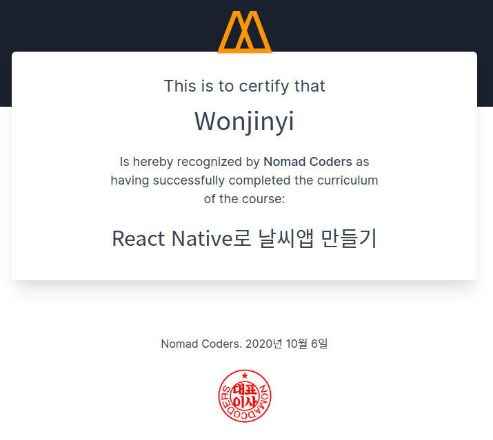 Nomad Coders : React Native로 날씨앱 만들기 완강 본문