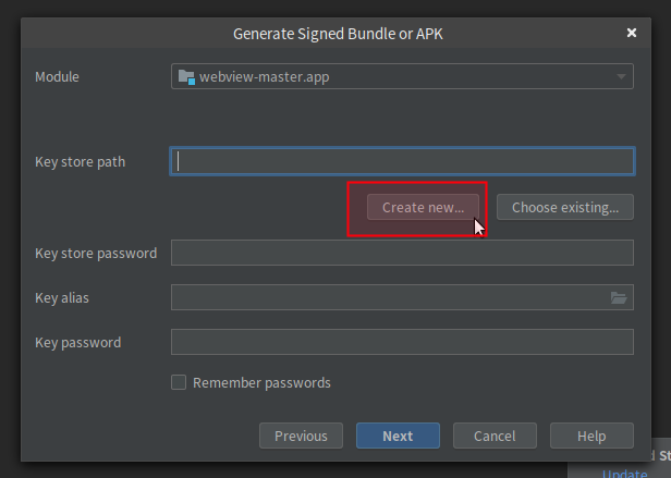 New Key Store 창에서 설정한 Key store Password, Alias, Key Password 세 가지를 잘 기억해두어야 한다.