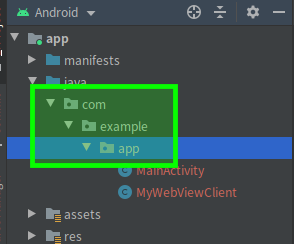 먼저 [app]아래의 패키지 이름을 원하는 대로 바꾸어주자. 왼쪽 사진의 좌측 초록박스에 보이는 'com.example.app'이 현재 패키지 이름이다. 중간의 example을 다른 이름으로 바꾸어줄 것이다. 이 패키지 이름은 프로젝트의 여러군데서 쓰이고있다. 무식하게 우클릭-이름바꾸기를 하면 기나긴 고통의 길을 걷게 될 것이다.