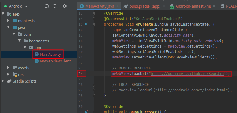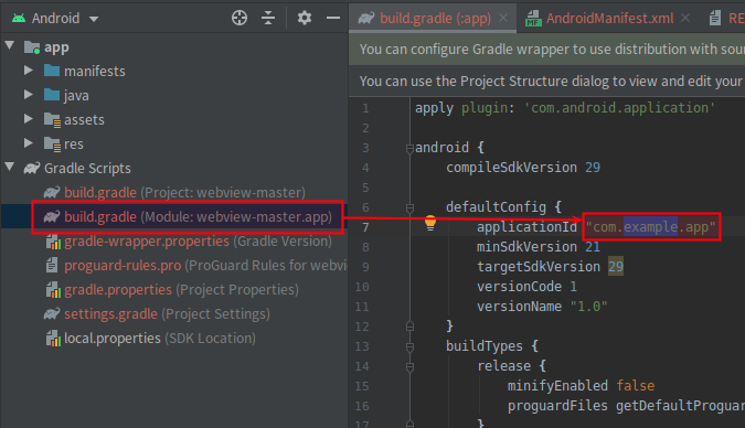 패키지 이름, 앱 이름, 그리고 내가 보여주고픈 웹서비스URL. 세 가지를 차례로 수정하자.