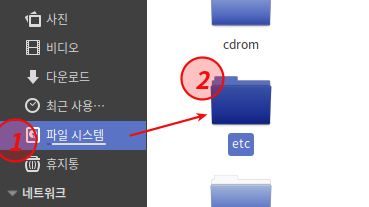매번 android-studio/bin으로 들어가서 studio.sh를 켜기는 너무 귀찮다. 어느 경로에서나 'studio.sh'를 입력하여 실행할 수 있도록 환경변수를 등록하자. 먼저 [파일시스템]-[etc]에 [우클릭]-[관리자 권한으로 열기]로 진입한다.