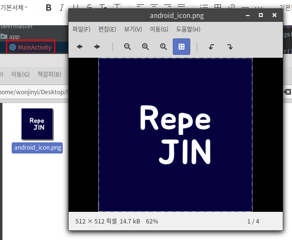 우선 512x512px의 이미지 파일이 있어야 한다. 그림판이든 일러스트든 잘 그려서 가져오자. 원래같으면 모든 크기와 모양의 아이콘에 대응해서 열심히 작업해야하겠지만, 안드로이드 스튜디오는 512x512px이미지만 냅다 박으면 알아서 다 만드는 기능을 제공한다.