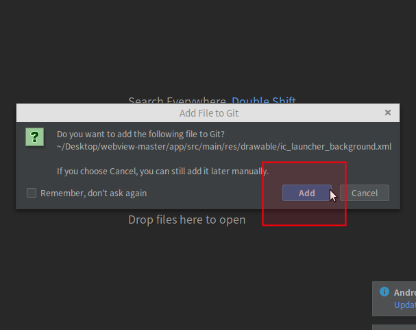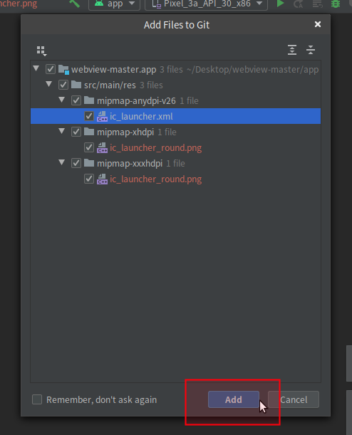 "방금 니가 던진 이미지로 이거저거 많이 만들어놨는데, Git에 추가할까?" 하고 물어보는 내용이다. 추가하기를 원하면 [Add]만 계속 누르면 된다. 적당한 순간에 언젠간 닫힌다. 원하지 않으면 그냥 캔슬 눌러버리면 된다. 여기까지 왔다면, 이제는 빌드과정중 에러와의 싸움만 남았다.