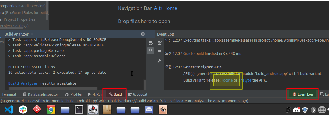 [Finish]를 누르면 프로젝트로부터 Apk를 추출하기 시작한다.