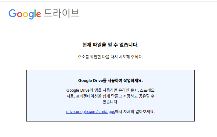 웹앱 url을 웹브라우저에 직접 입력했을 때는 '현재 파일을 열 수 없습니다'라는 화면이 출력되고, js로 get/post 요청을 넣었을 때는 CORS+네트워크 오류가 뜬다.