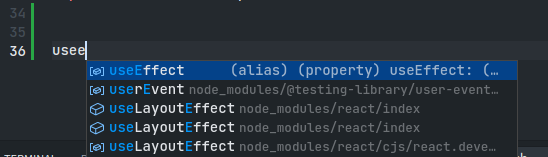 CRA환경에서 useEffect를 입력하면 자동완성되는 항목을 골랐다.