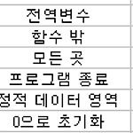 1. 기억 부류의 종류 : 전역, 지역, 정적, 레지스터 2. 지역변수와 전역변수의 차이 정적 데이터 영역 : 프로그램 코드 다음에 위치하는 한 부분. 프로그램 실행 시 메모리에 로드되어 계속 유지.지역 변수의 장점 : 함수의 독립성 높임, 메모리 절약, 디버깅 효율 향상, 특별한 기법 사용(재귀 호출, 상호 호출)* 지역 변수를 자동 변수(Automatic Variable)라고도 부른다. 자동으로 생성되어 자동으로 파괴되기 때문.* 지역 변수의 통용 범위는 정확히 말하면 { } 블럭 내부이다. 블럭 바깥에서는 못쓴다.* 지역 변수가 파괴되는 시점은 컴파일러마다 다르다. 보통은 for문에서 만든 변수는 루프가 끝나면 파괴된다. * 함수 내에서는 같은이름의 전역 변수, 지역 변수가 있다면. 지역 변수를 우..
